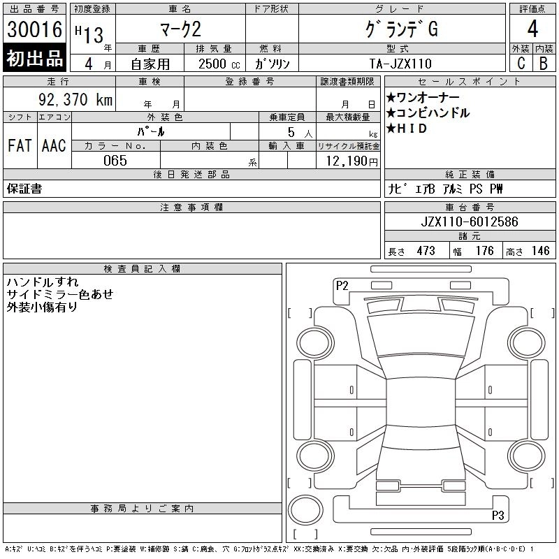 TOYOTA MARK II 2001 г., лот № 30016