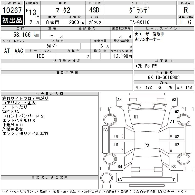 Год выпуска2001 Пробег 58 000 км КузовGX110 Комплектация GRANDE