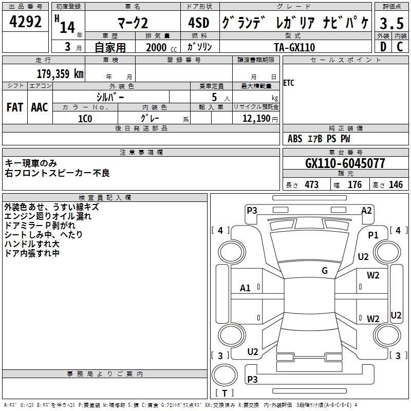 Год выпуска2002 Пробег 179 000 км КузовGX110 Комплектация GRANDE REGALIA NAVI PACK