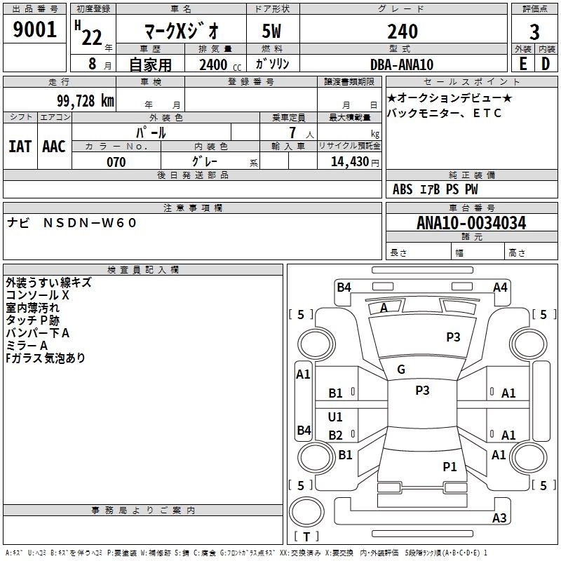 TOYOTA MARK X ZIO 2010 г., лот № 9001