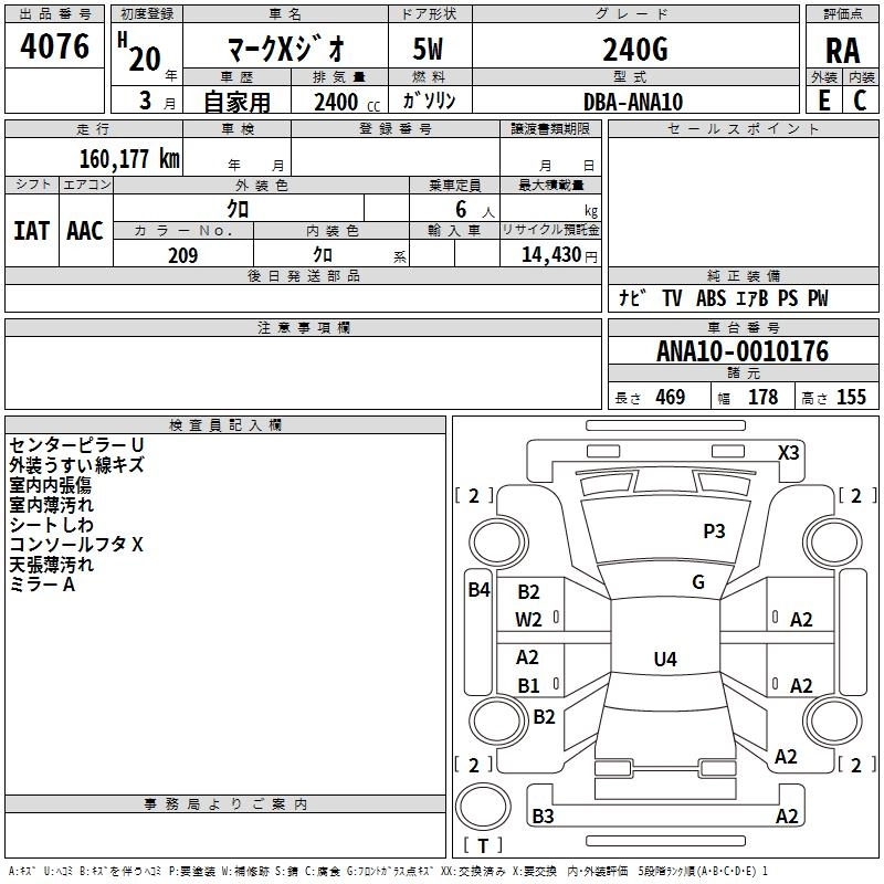 TOYOTA MARK X ZIO 2008 г., лот № 4076