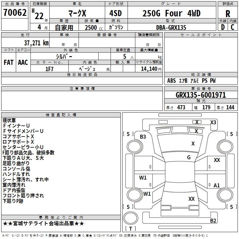 TOYOTA MARK X 2010 г., лот № 70062