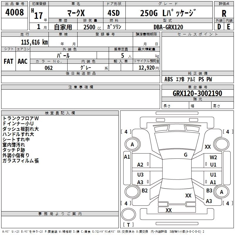 TOYOTA MARK X 2005 г., лот № 4008