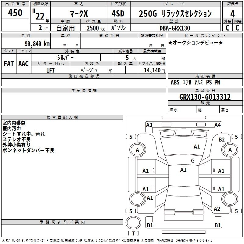 TOYOTA MARK X 2010 г., лот № 450