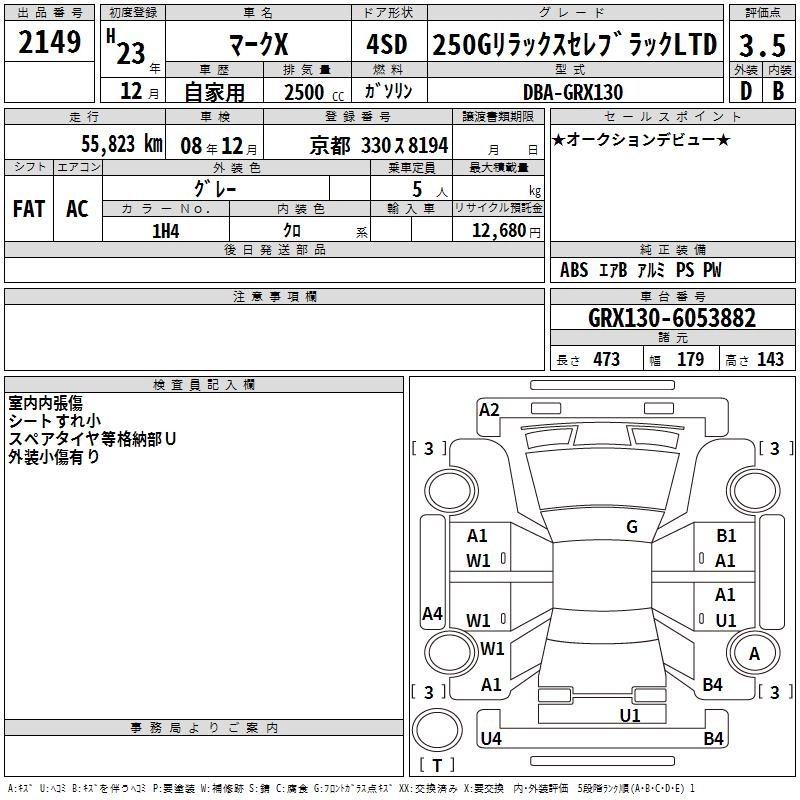 TOYOTA MARK X 2011 г., лот № 2149