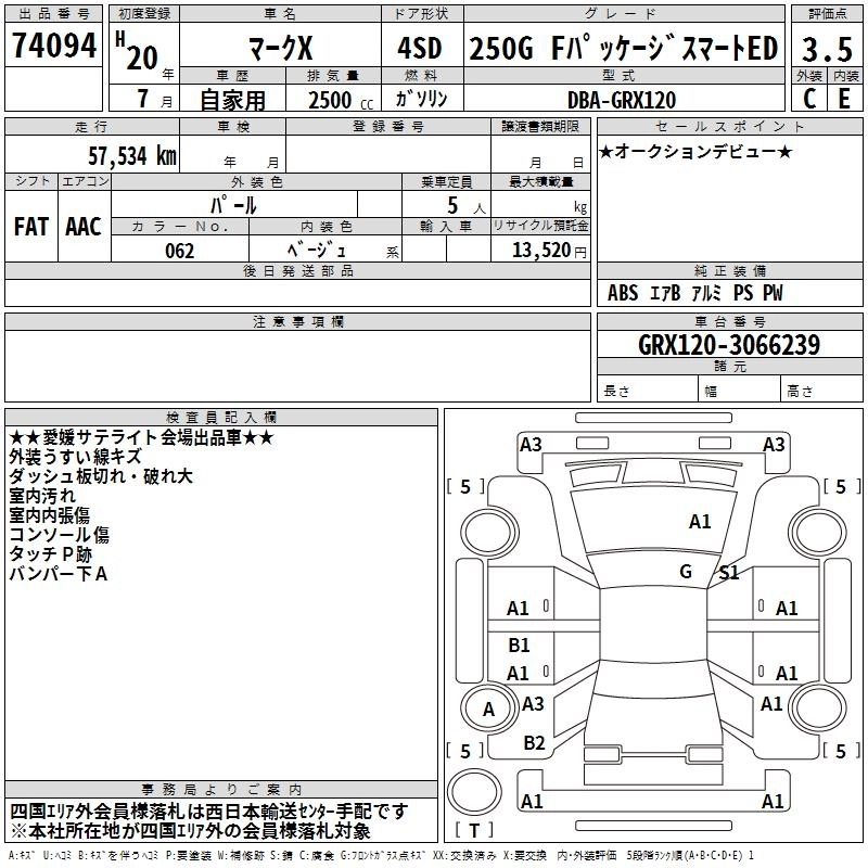 Статус выставлен на аукцион Лот 74094 Аукцион TAA Shikoku Дата аукциона 10.03.2026