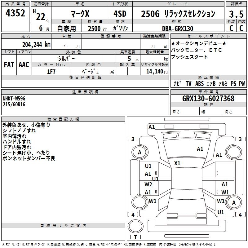 Год выпуска2010 Пробег 204 000 км КузовGRX130 Комплектация250G RELAX SELECTION