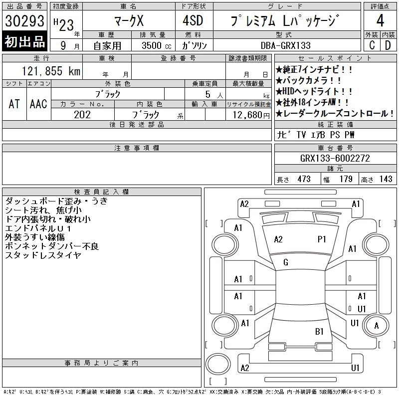 TOYOTA MARK X 2011 г., лот № 30293