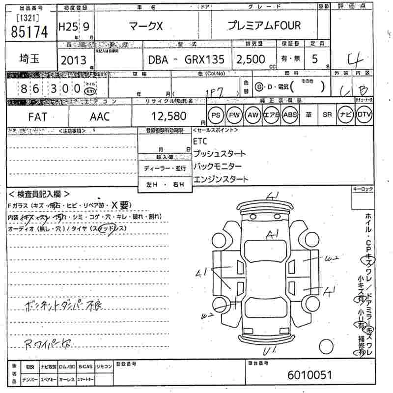 TOYOTA MARK X 2013 г., лот № 85174