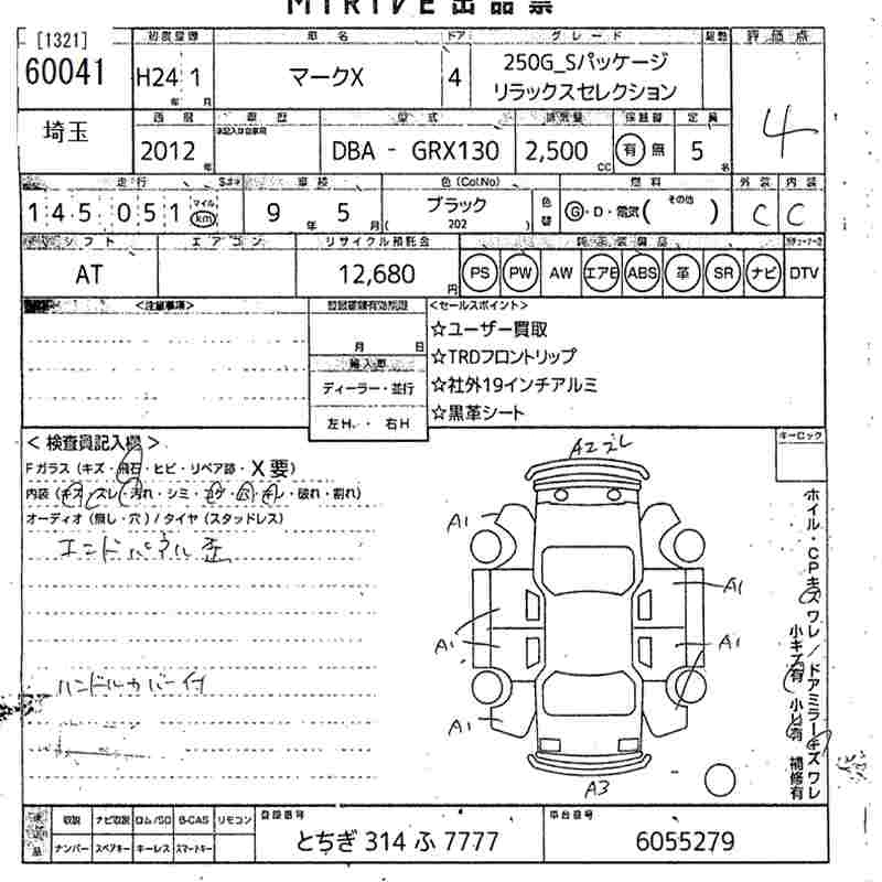 TOYOTA MARK X 2012 г., лот № 60041