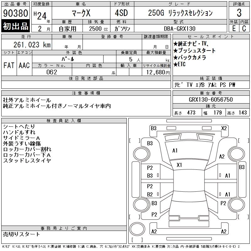 TOYOTA MARK X 2012 г., лот № 90380