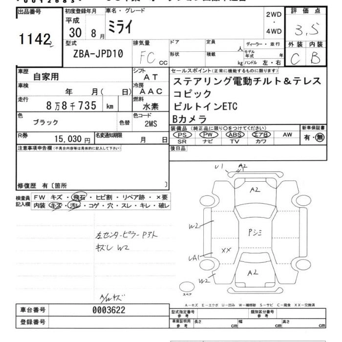 Стартовая цена авто на аукционе 0 ¥
