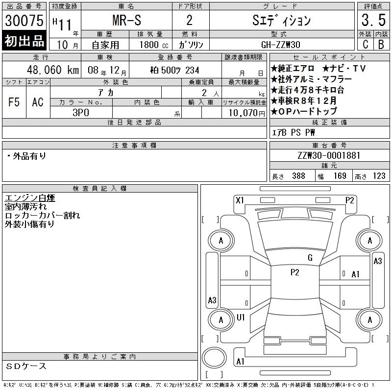 TOYOTA MR-S 1999 г., лот № 30075