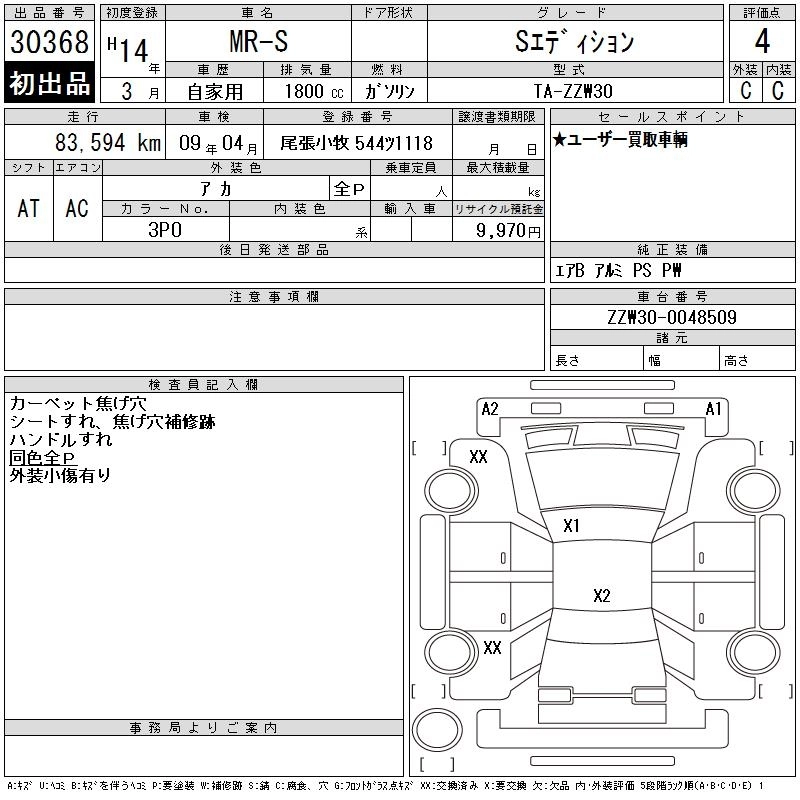 Статус выставлен на аукцион Лот 30368 Аукцион CAA Chubu Дата аукциона 11.03.2026