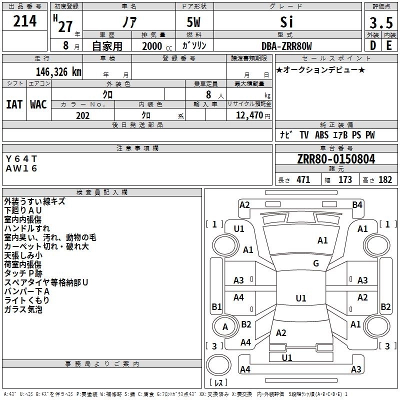 TOYOTA NOAH 2015 г., лот № 214