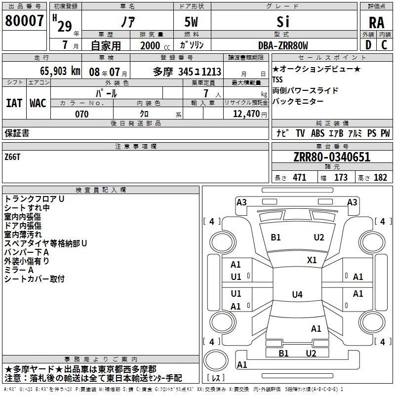 TOYOTA NOAH 2017 г., лот № 80007