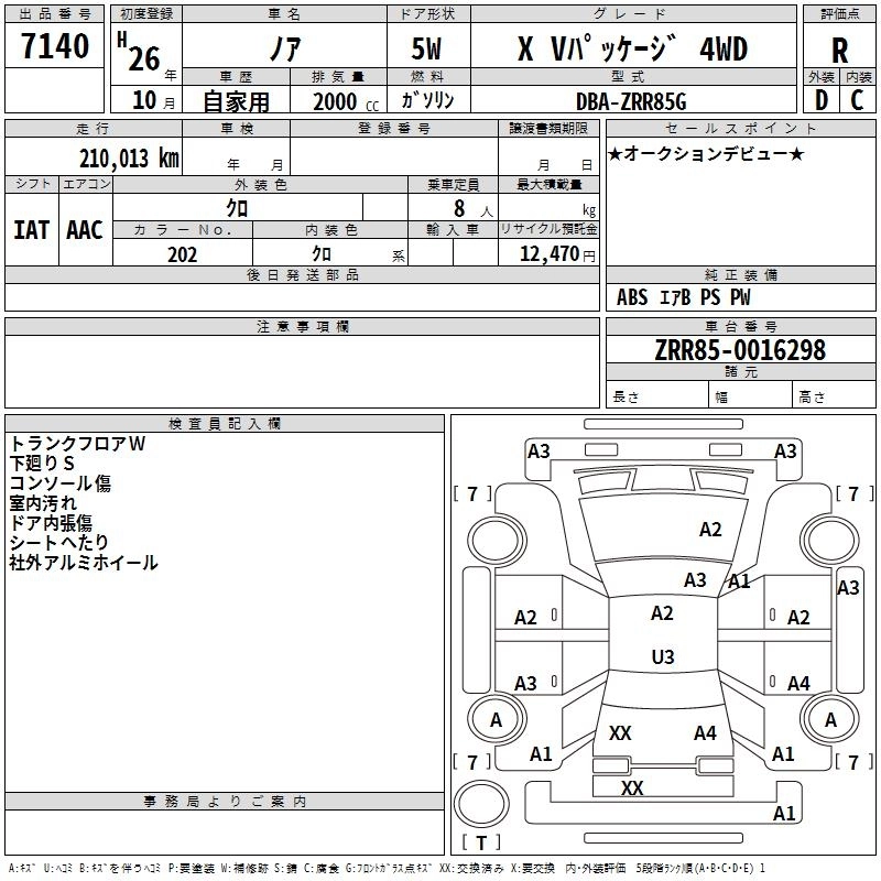 TOYOTA NOAH 2014 г., лот № 7140