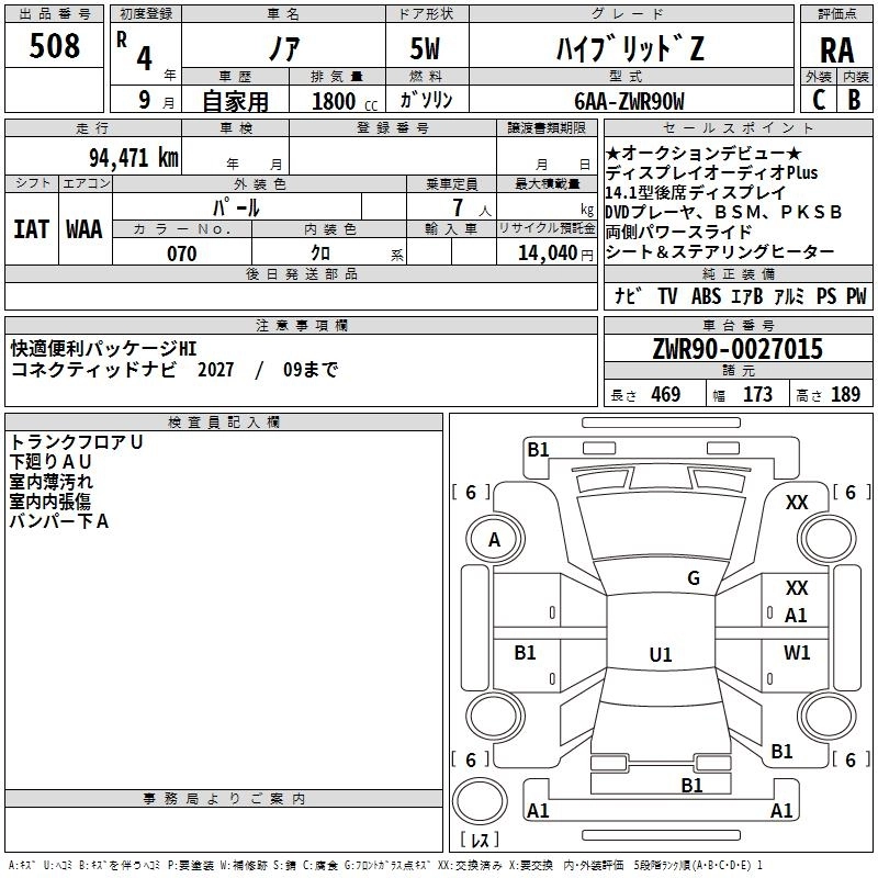 TOYOTA NOAH 2022 г., лот № 508