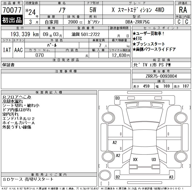 TOYOTA NOAH 2012 г., лот № 70077