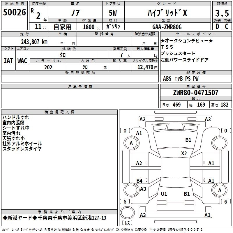 TOYOTA NOAH 2020 г., лот № 50026