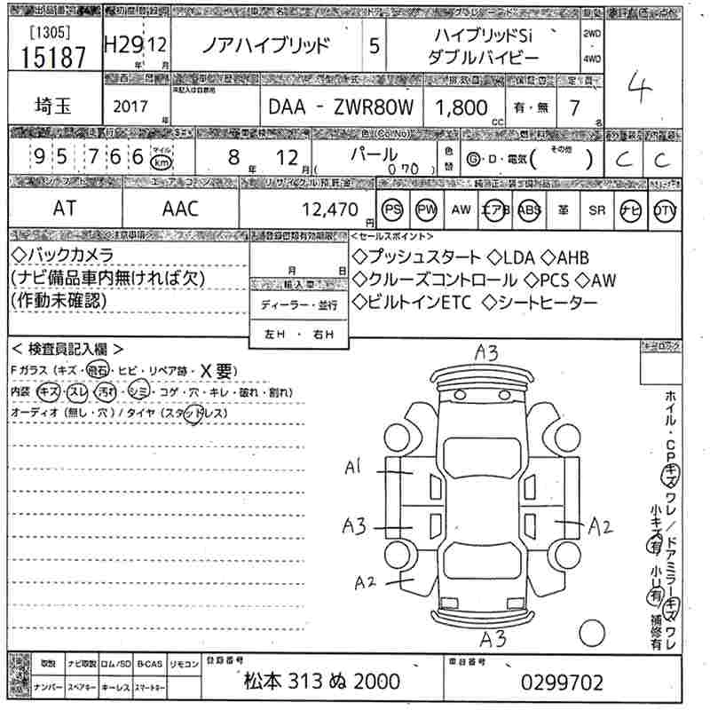 TOYOTA NOAH 2017 г., лот № 15187
