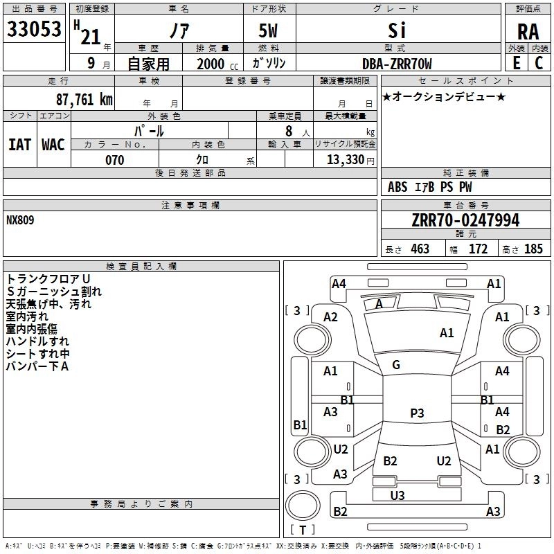 TOYOTA NOAH 2009 г., лот № 33053
