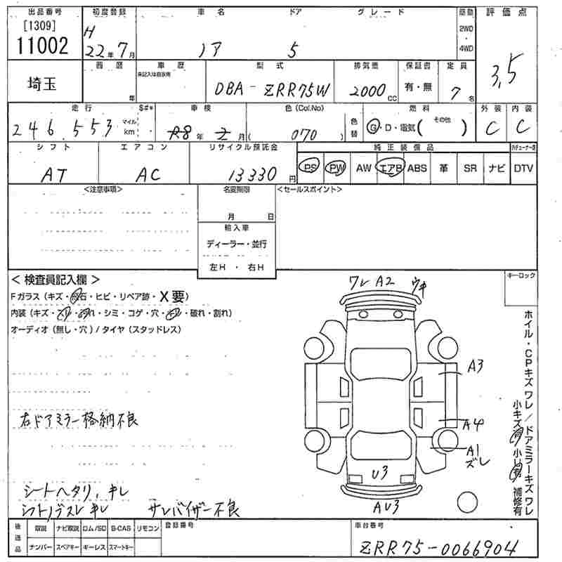 Год выпуска2010 Пробег 247 000 км КузовZRR75W