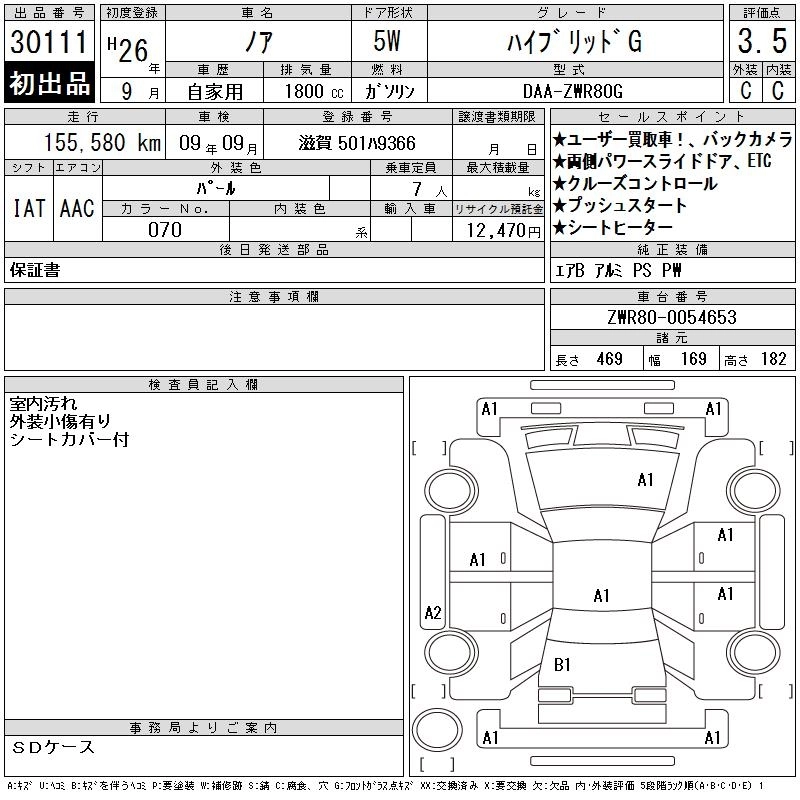 TOYOTA NOAH 2014 г., лот № 30111