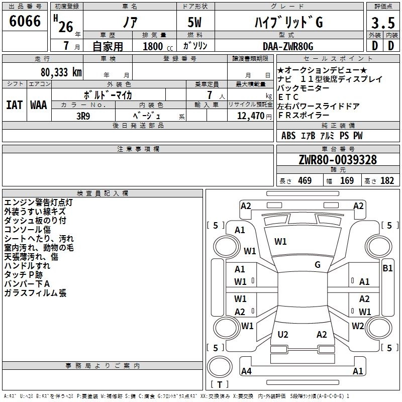 TOYOTA NOAH 2014 г., лот № 6066
