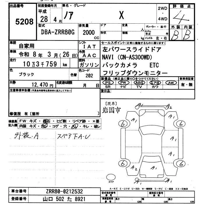 TOYOTA NOAH 2016 г., лот № 5208