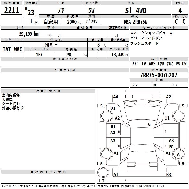 TOYOTA NOAH 2011 г., лот № 2211