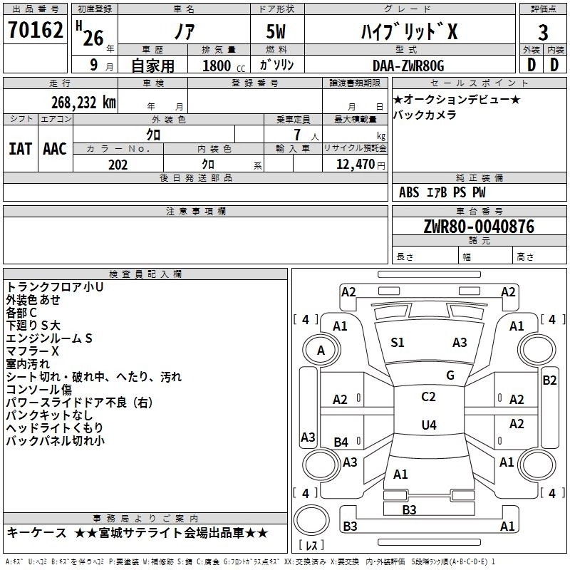 TOYOTA NOAH 2014 г., лот № 70162