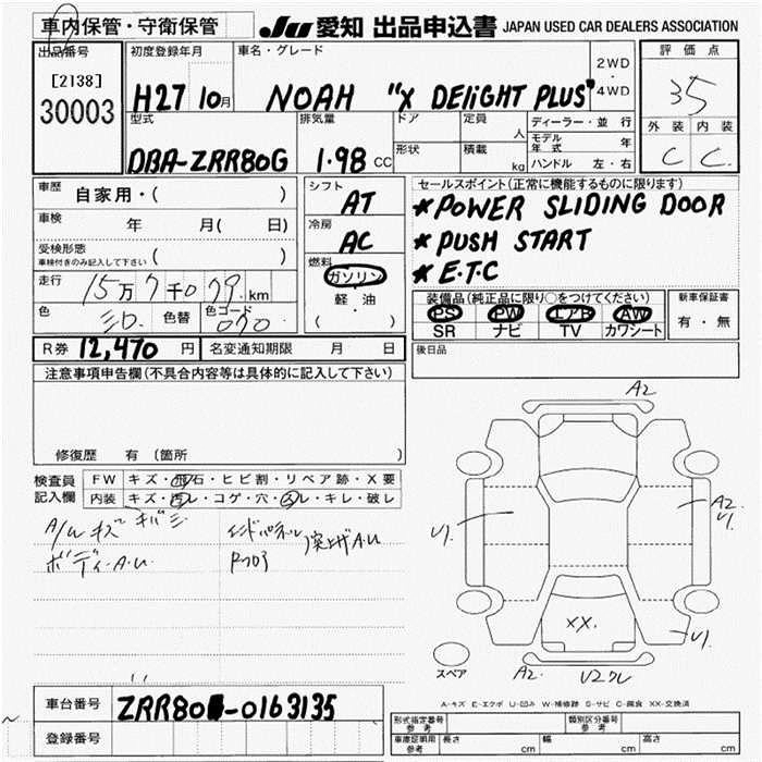 TOYOTA NOAH 2015 г., лот № 30003