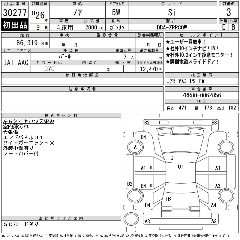 TOYOTA NOAH 2014 г., лот № 30277