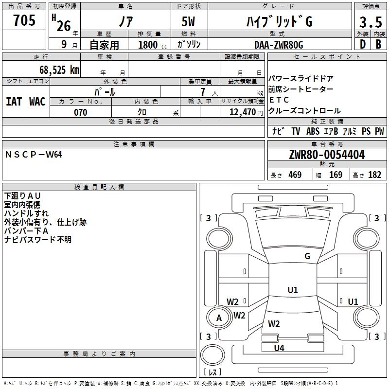 TOYOTA NOAH 2014 г., лот № 705