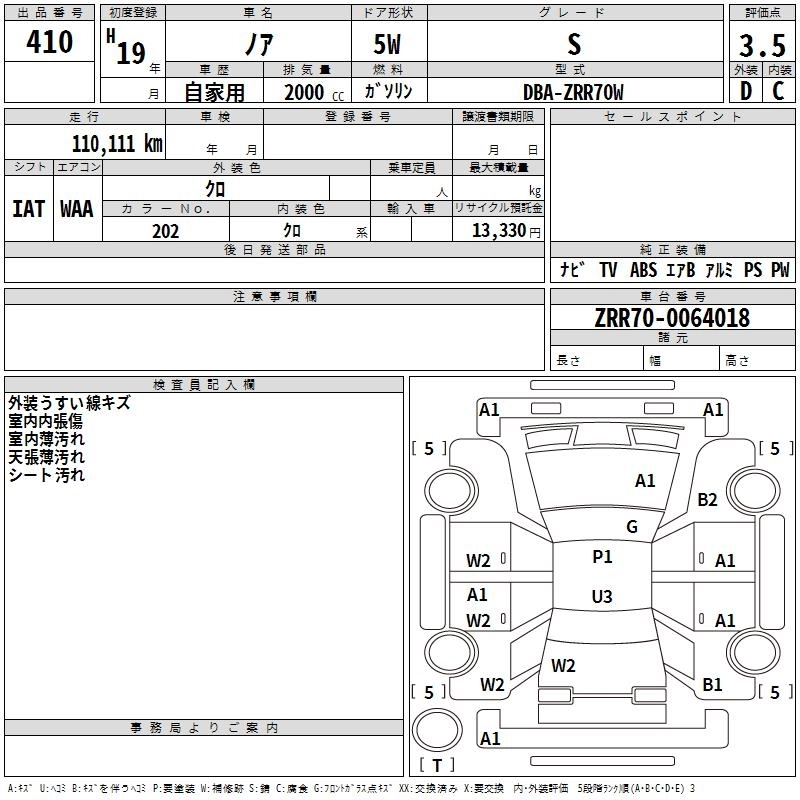 TOYOTA NOAH 2007 г., лот № 410