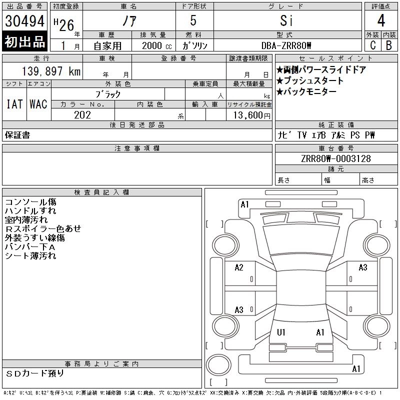 TOYOTA NOAH 2014 г., лот № 30494
