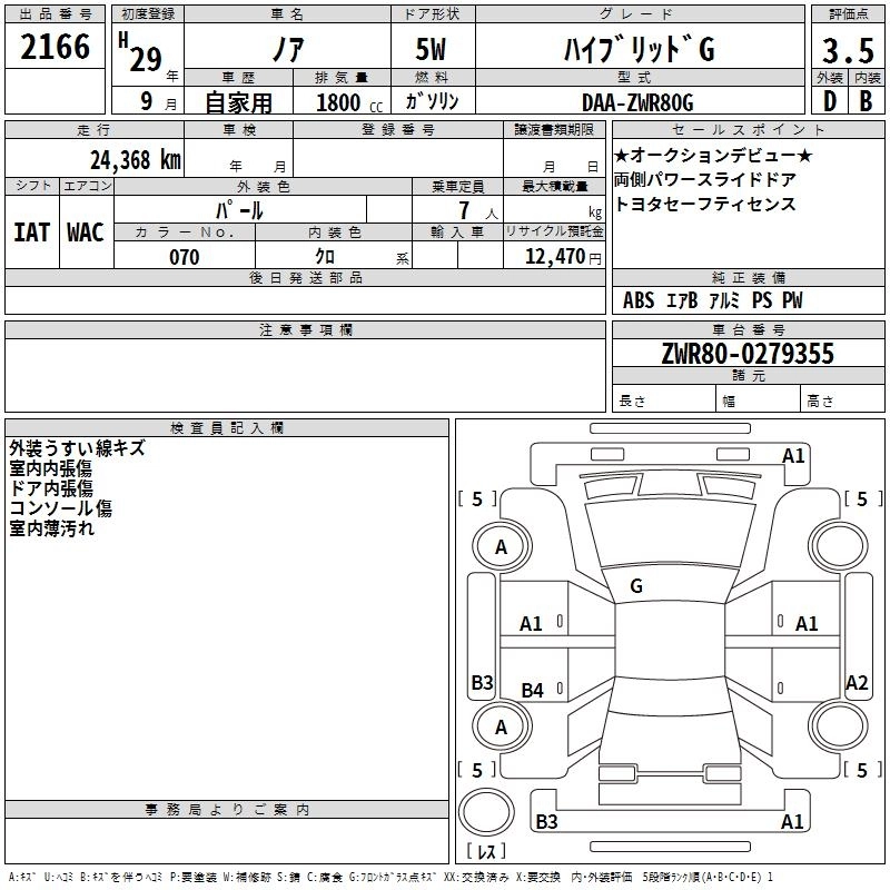 TOYOTA NOAH 2017 г., лот № 2166
