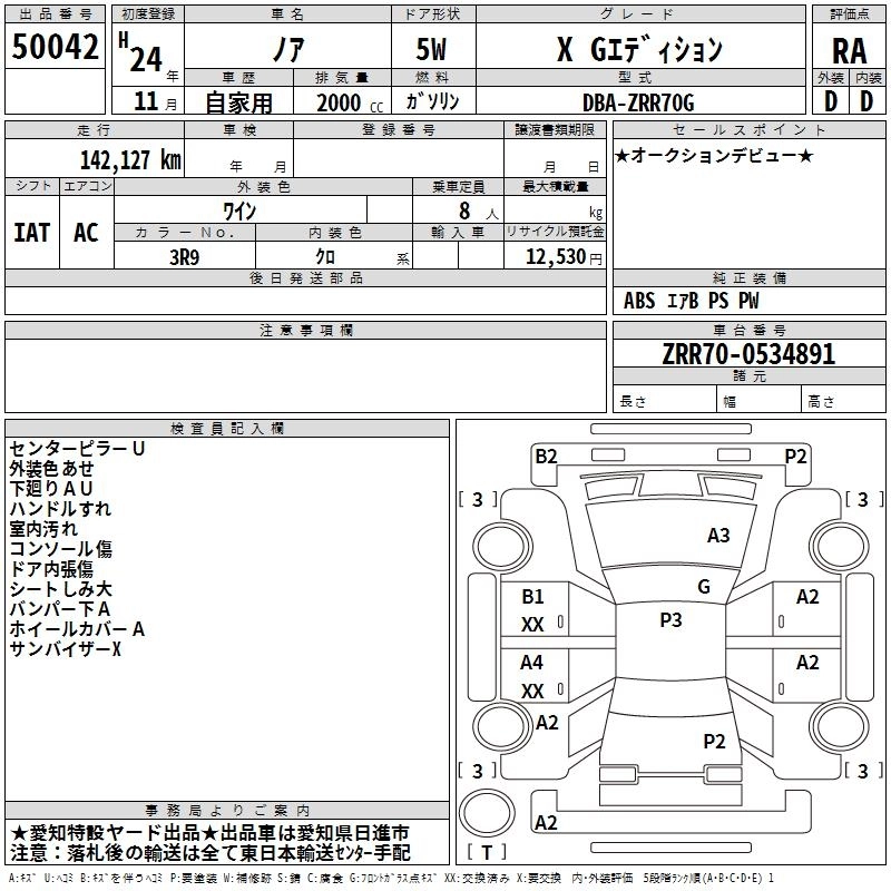 TOYOTA NOAH 2012 г., лот № 50042