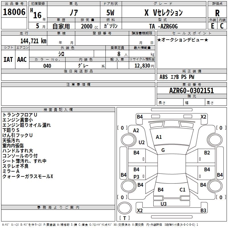 TOYOTA NOAH 2004 г., лот № 18006