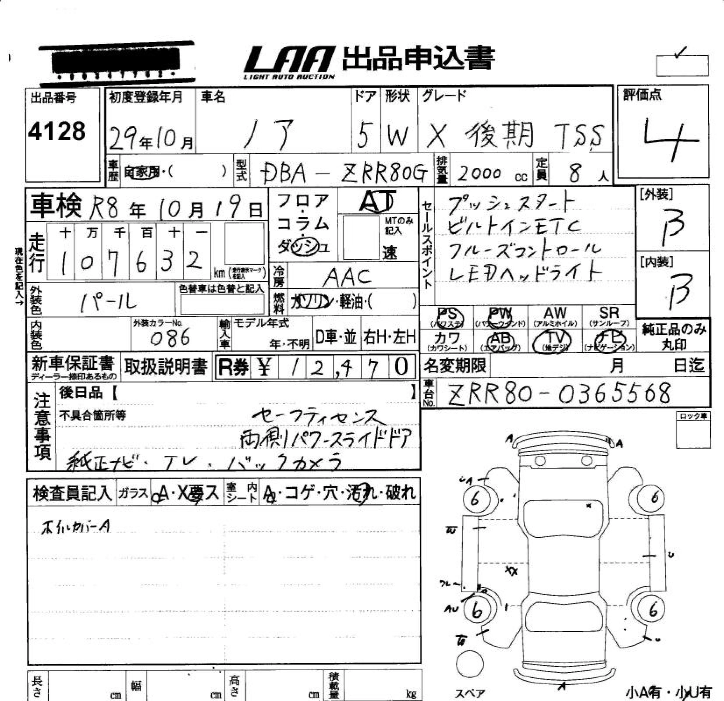 Год выпуска2017 Пробег 108 000 км КузовZRR80G КомплектацияX LATTER TERM TSS