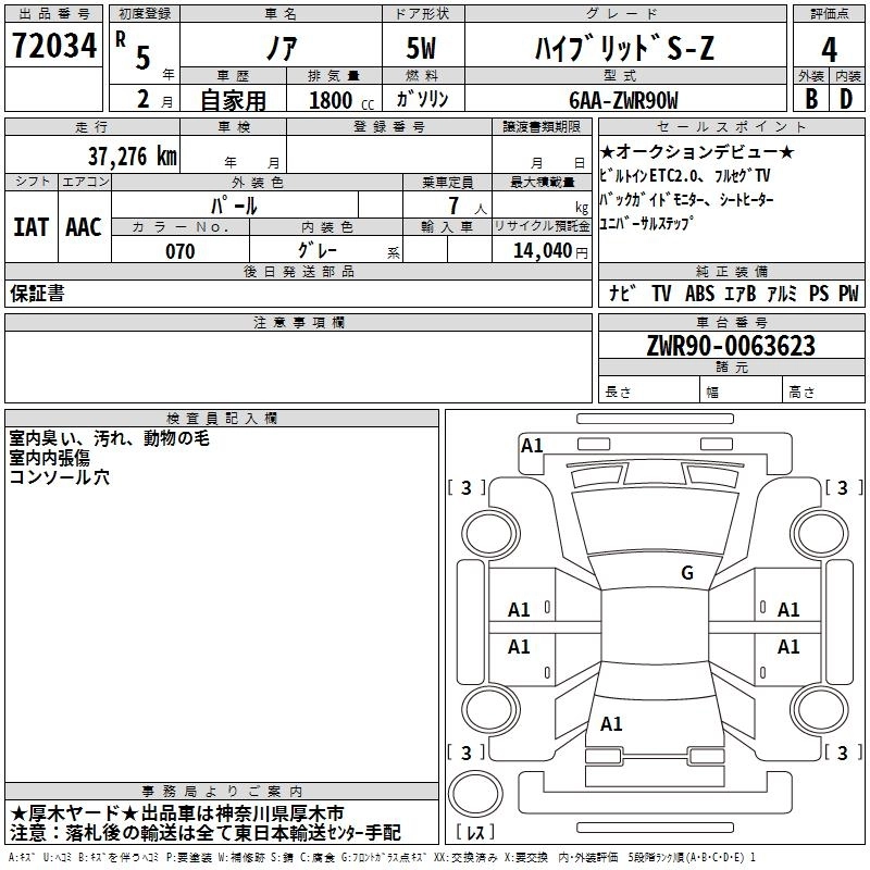 TOYOTA NOAH 2023 г., лот № 72034