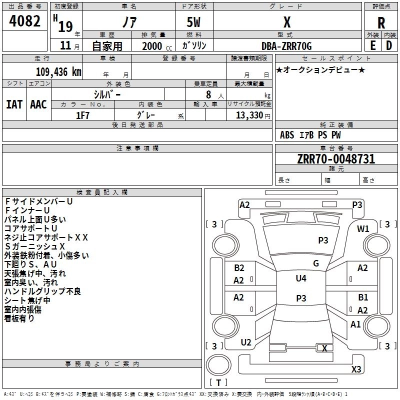 TOYOTA NOAH 2007 г., лот № 4082
