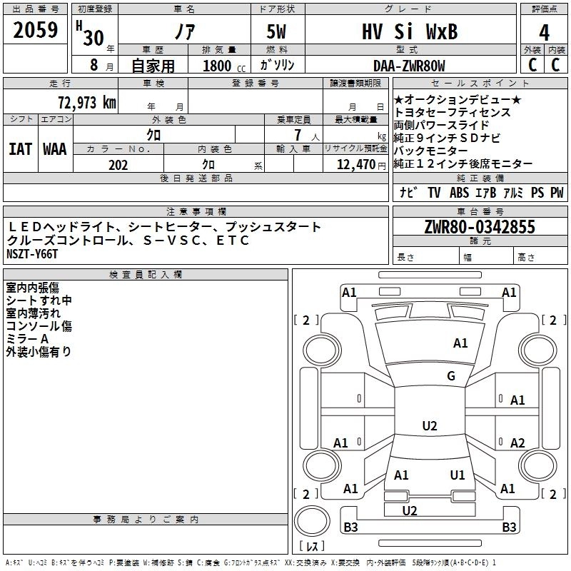 TOYOTA NOAH 2018 г., лот № 2059