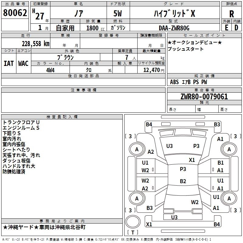 TOYOTA NOAH 2015 г., лот № 80062