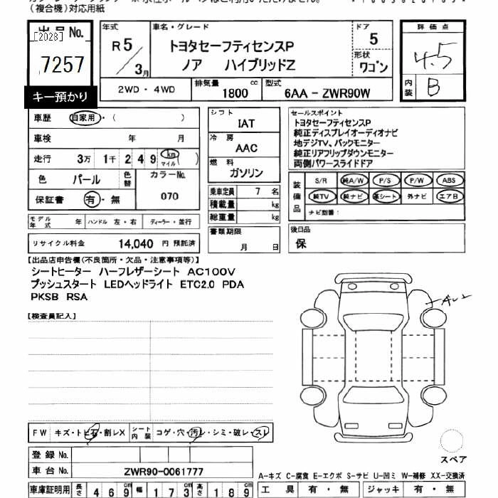 Год выпуска2023 Пробег 31 000 км КузовZWR90W Комплектация HYBRID Z TOYOTA SAFETY SENS