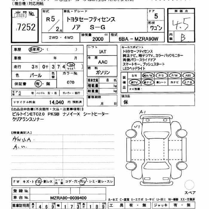 TOYOTA NOAH 2023 г., лот № 7252