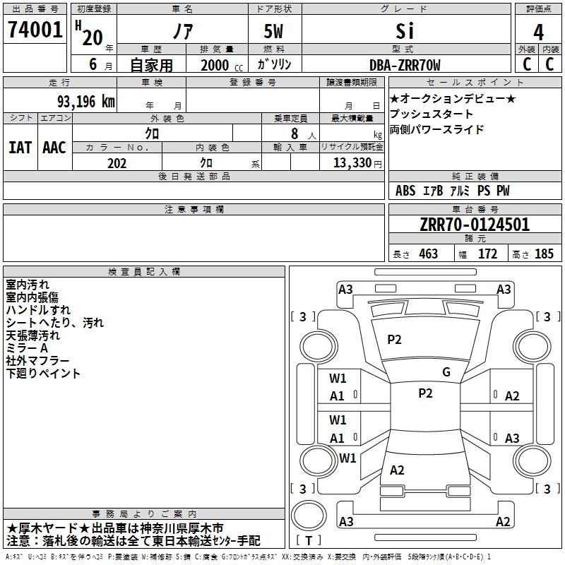 TOYOTA NOAH 2008 г., лот № 74001