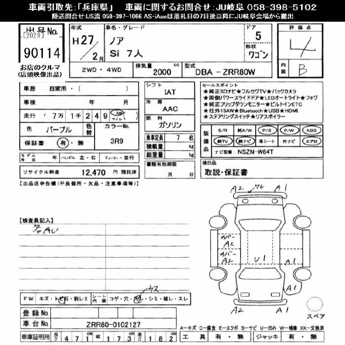 Год выпуска2015 Пробег 71 000 км КузовZRR80W КомплектацияSI 7 PERSON