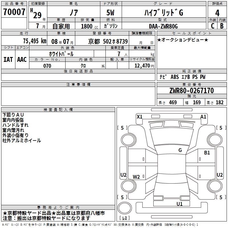 TOYOTA NOAH 2017 г., лот № 70007